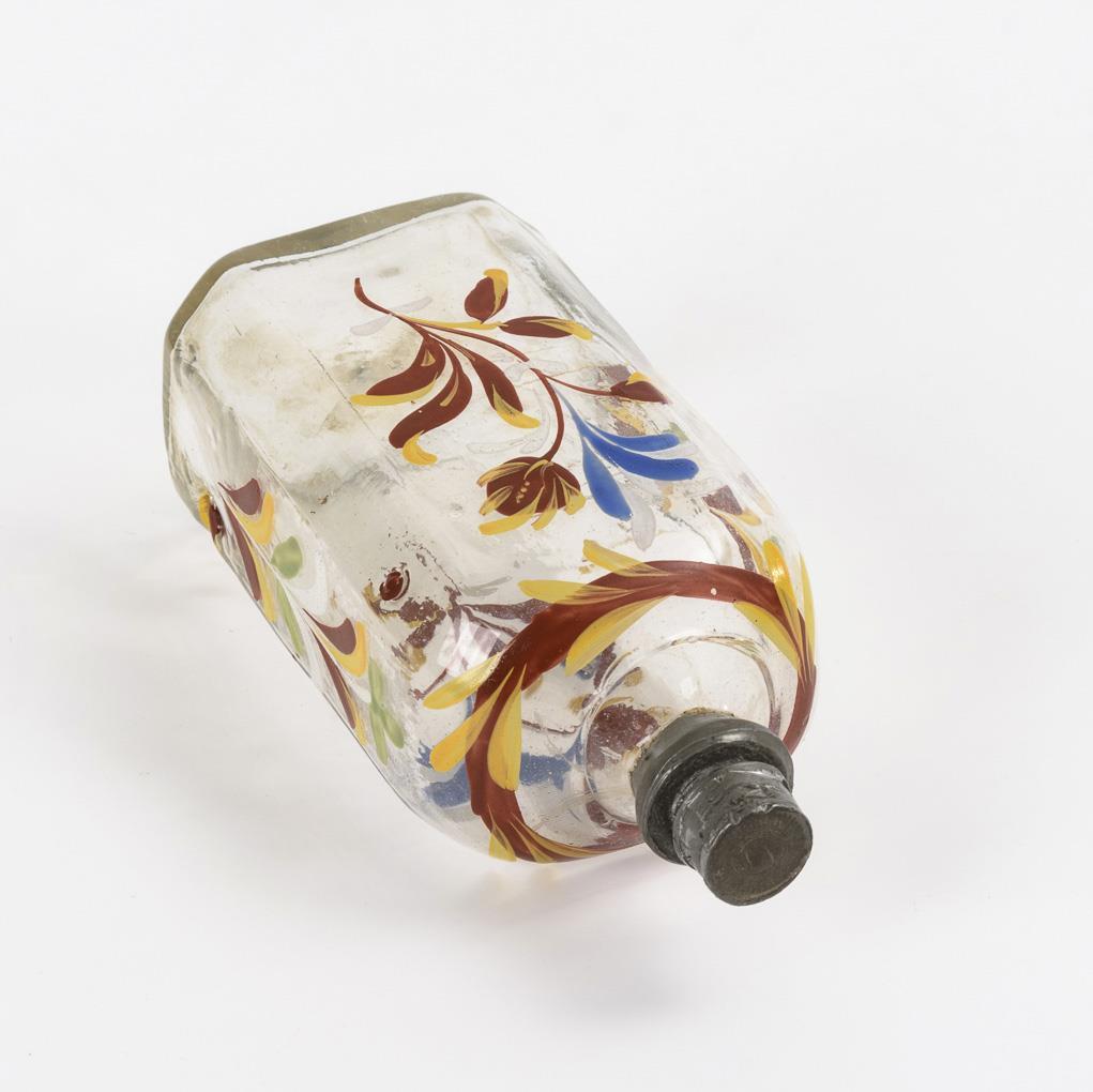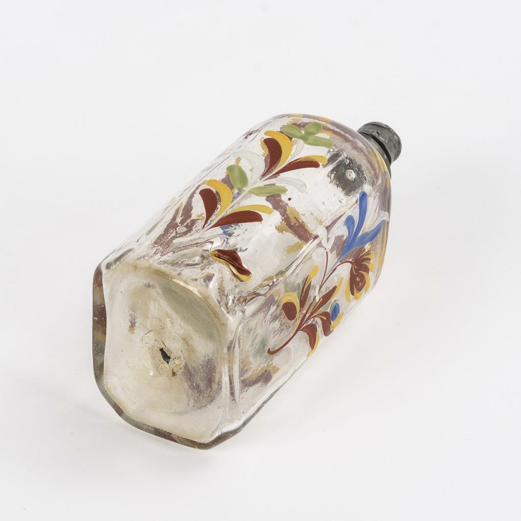 Schnapsflasche mit Emailmalerei.