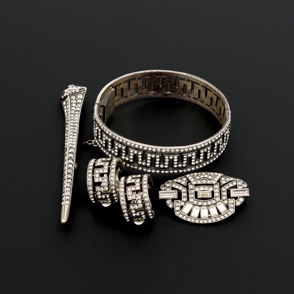4 Teile Art-déco-Modeschmuck mit Strassbesatz.