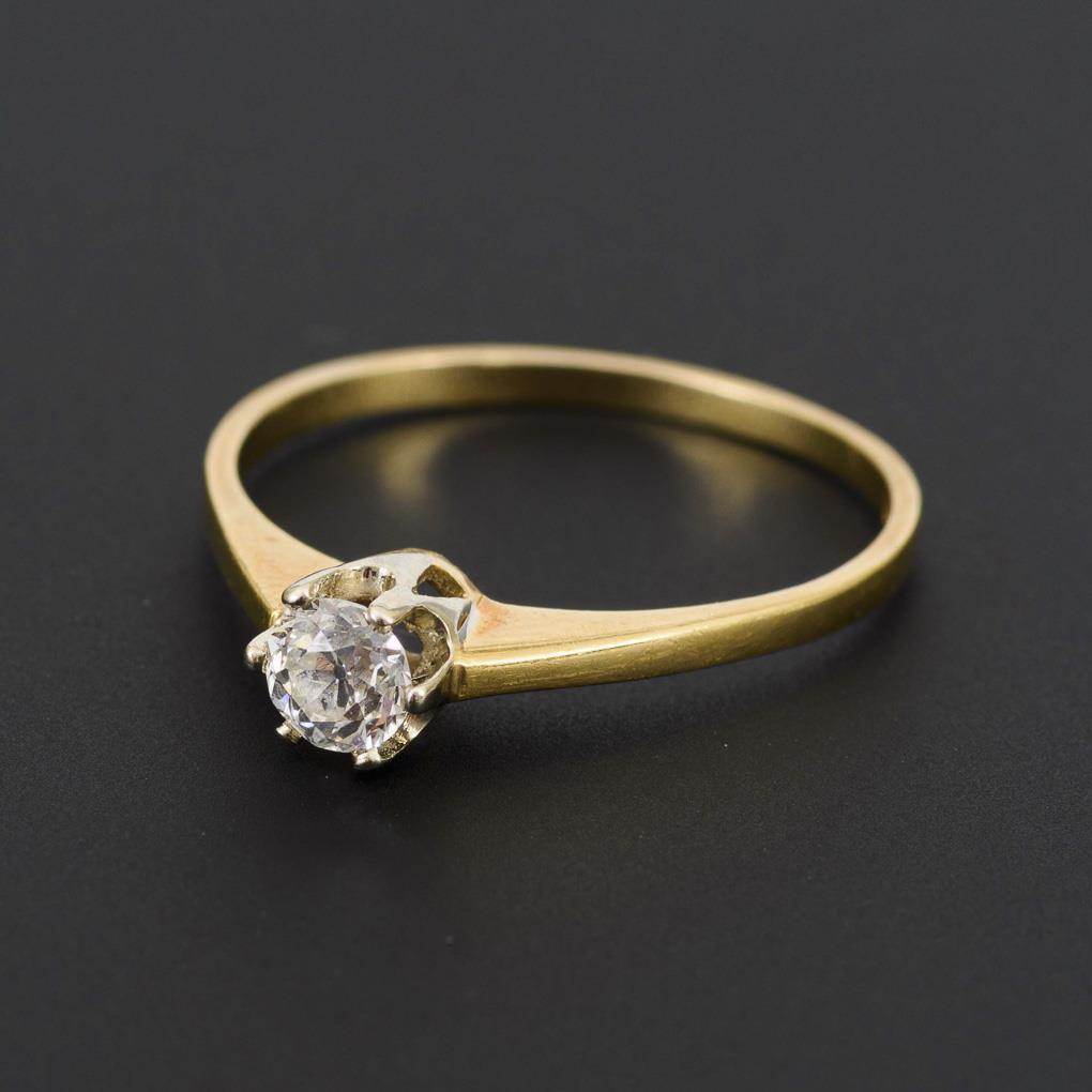 Gelbgold 750 gestempelt. Brillant ca. 0,25 ct. Ringgröße 57. 2,1 g.