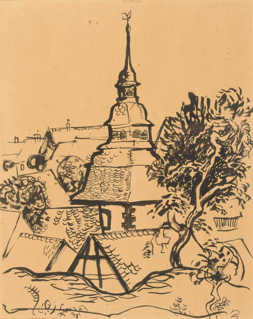 You are here: Home Categories Works on Paper Blick auf Dächer und Kirchturm