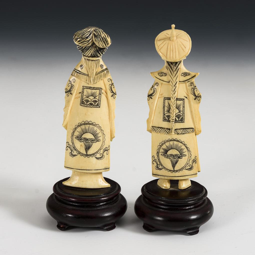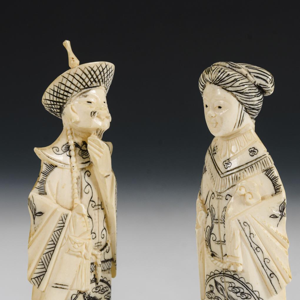 Darstellung hochstehender Personen. Der Mann mit Drachenornament, die Frau mit Phönix-Ornament auf der Kleidung.