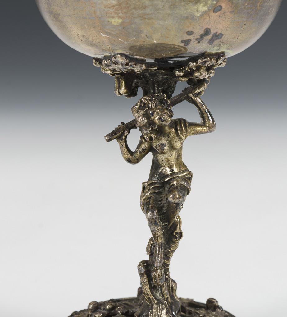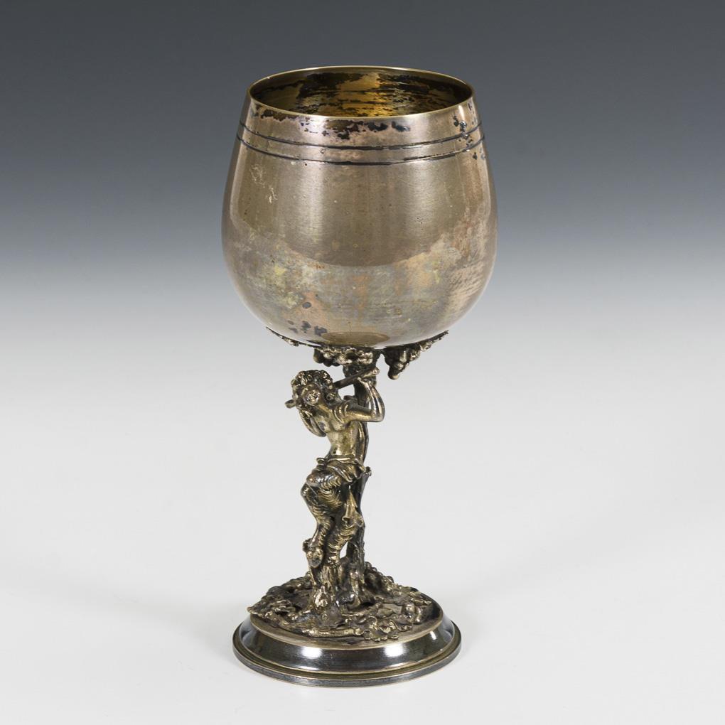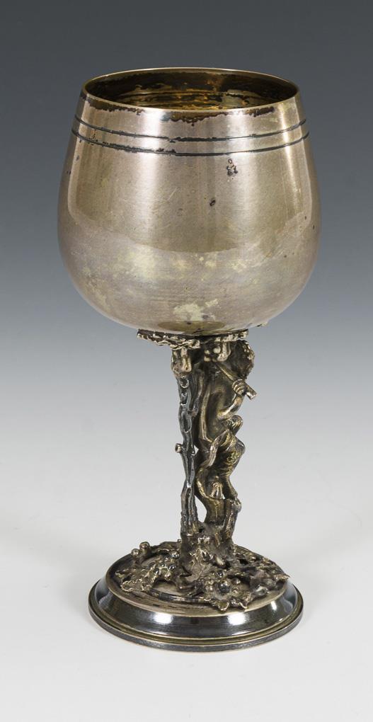 Pokal mit plastisch ausgearbeitetem Schaft. Vergoldung berieben.