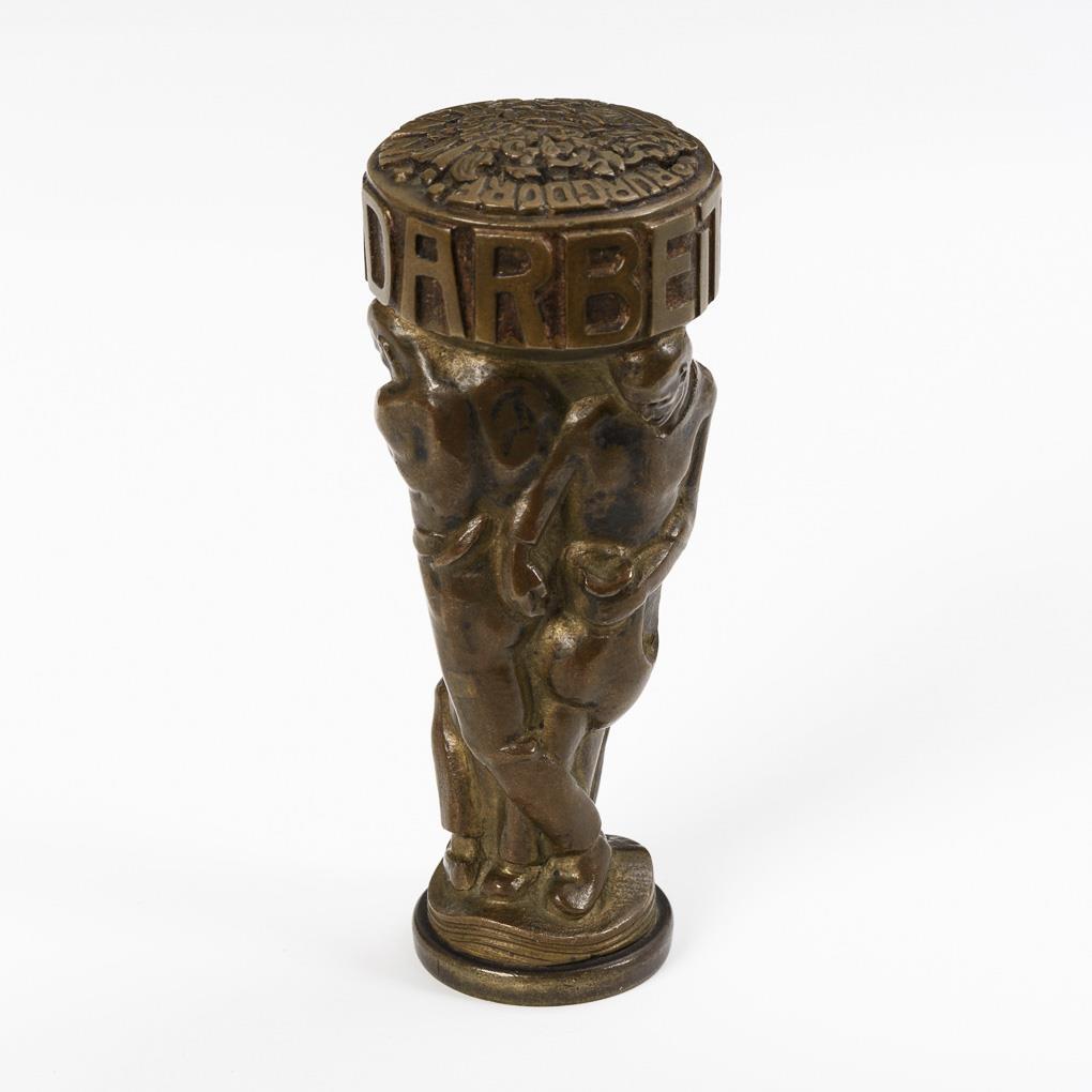 Bronze patinated, 6 stamped envelopes (used), 1x with wedding invitation, 1 postcard, 1 business card. Petschaft indistinctly inscribed (T.H.Blume?). H petschaft 10,5 cm.