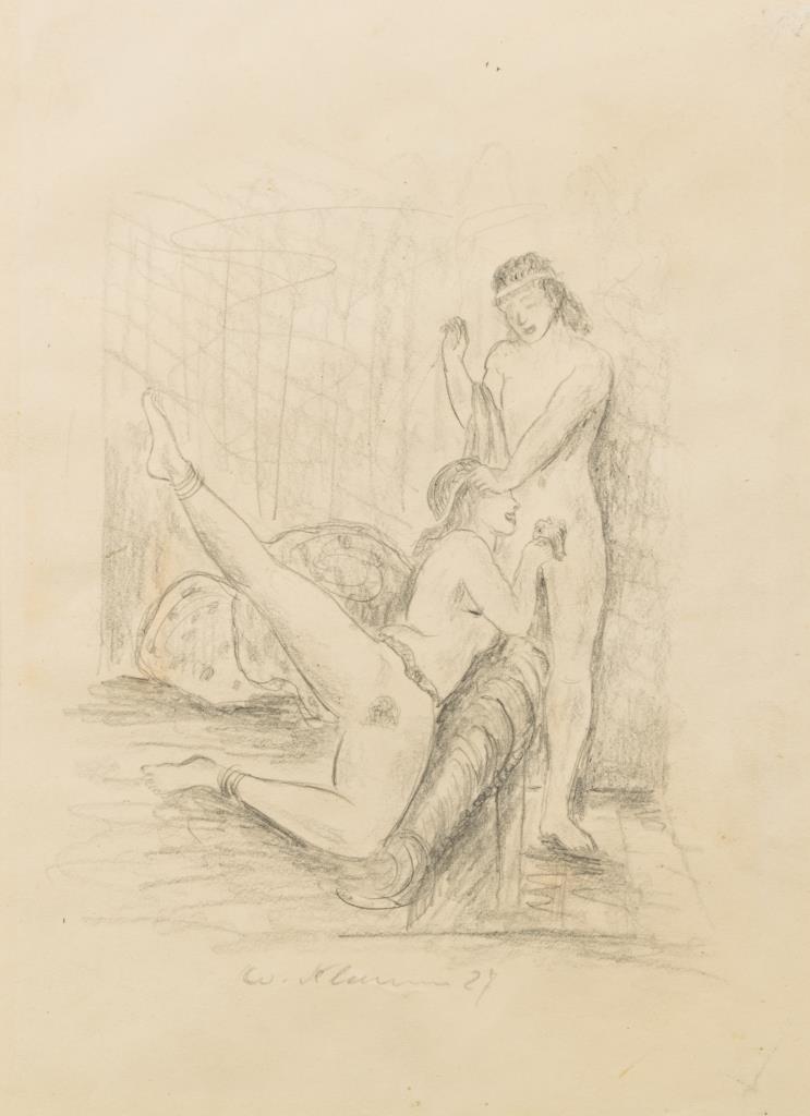 6 erotische Szenen von Walther Klemm (3x), Otto Goetz, Monogrammist "S.L." und Johannes Martini. Teils stockfleckig und geknickt.
