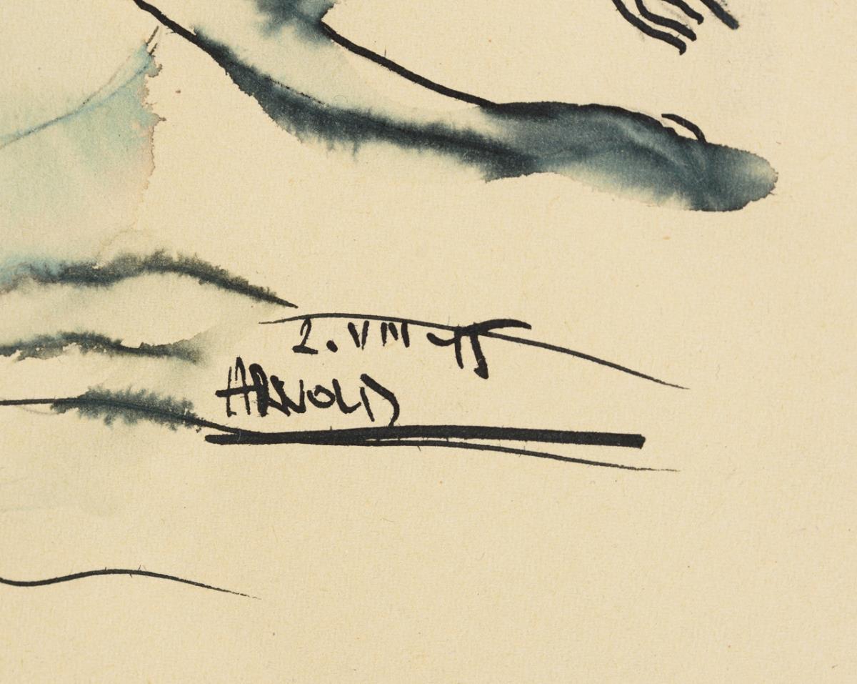 Aquarellierte Tuschzeichnung. Tuschsignatur. Datiert: 2.VIII.[19]45.
