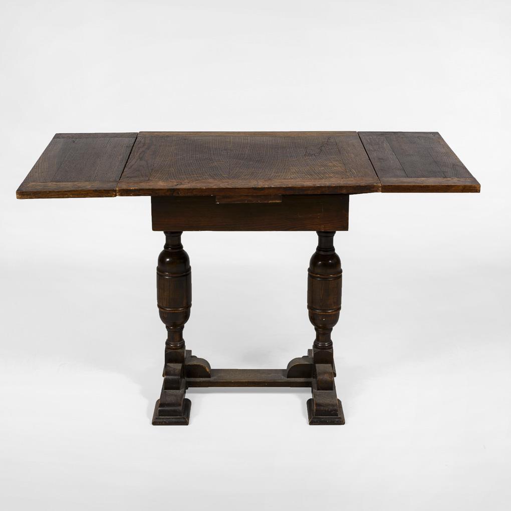 Kleiner Salontisch in Anlehnung an barocke Formensprache, auf 2 Balusterbeinen mit Fußbrett; mit Ausziehfunktion (einseitig oder zweiseitig). Alters-/Gebrauchsspuren.