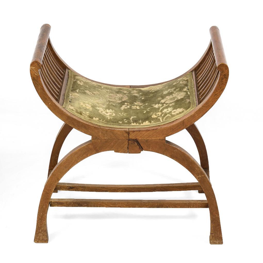 Nussbaum furniert. 58 x 56 x 37 cm, Sitzhöhe ca. 38 cm.