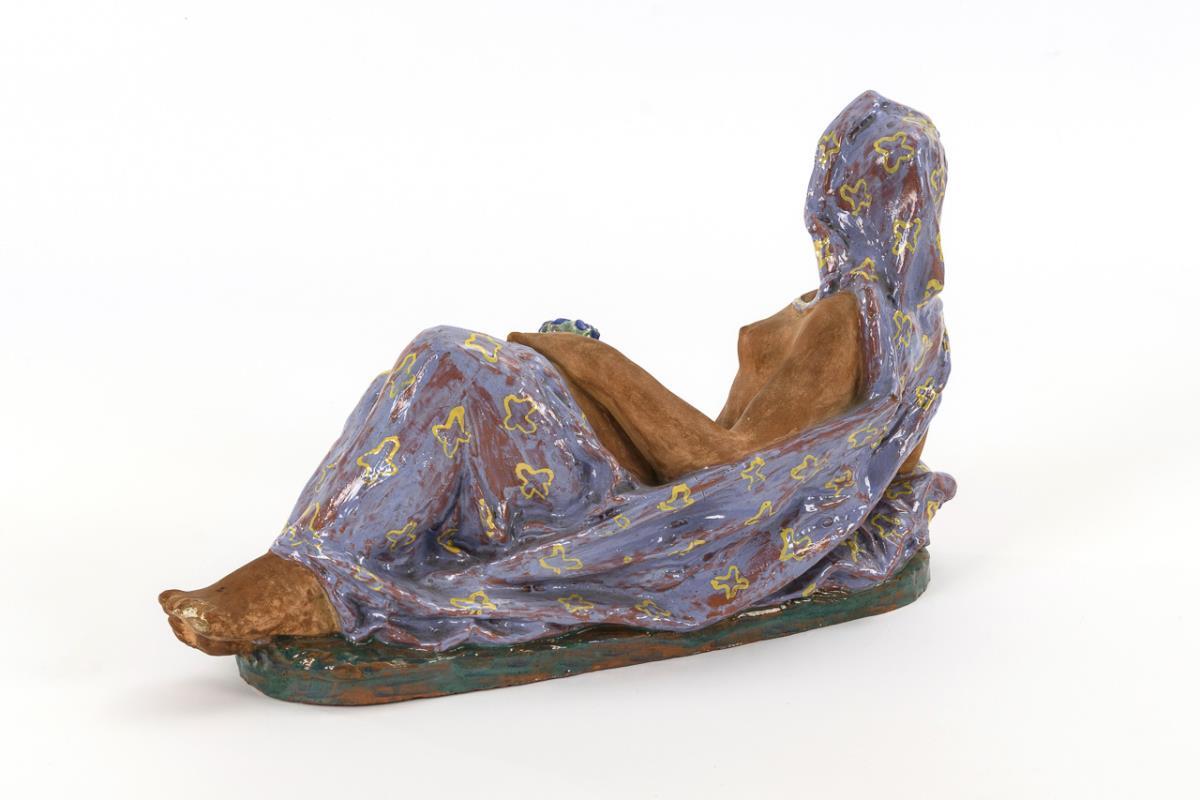 Liegende Terrakotta-Frauenplastik.