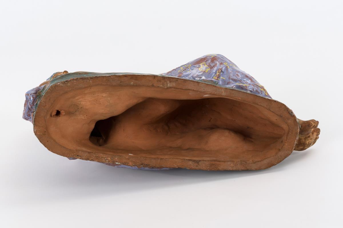Roter Ton, farbig bemalt. L 40,5 cm.