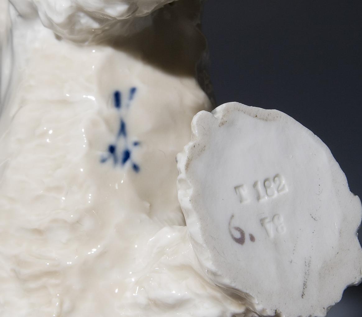 Modell von Otto Jarl 1903. Naturalistisch staffiert. Pressmarken, Malermarke, Schwertermarke.