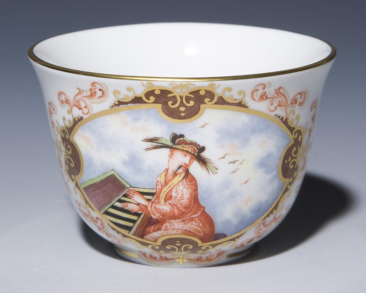 Paar Chinoiserien-Koppchen, Untertassen. Meissen.