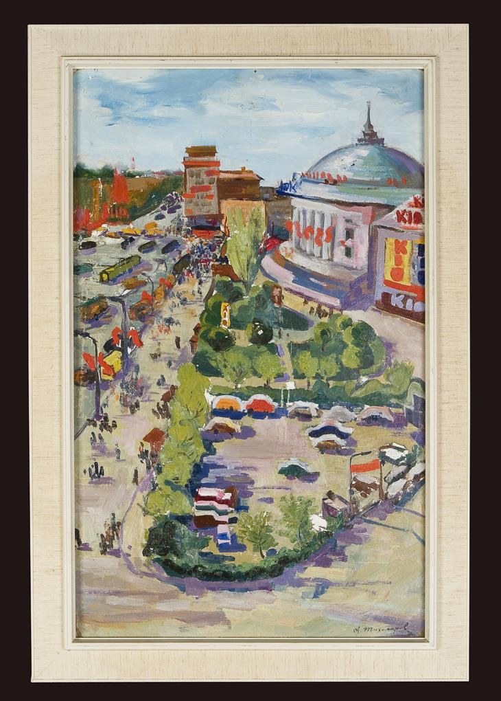 Öl auf Karton. Kyrillisch signiert.