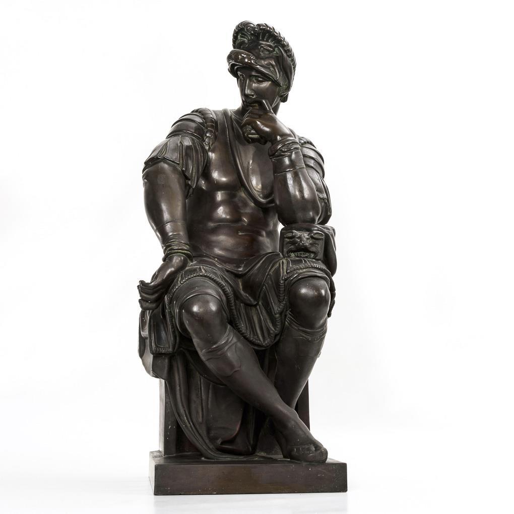 Nach der berühmten Sitzfigur von Michelangelo in der Medici-Grabkapelle in Florenz. Einige wenige Alters-/Gebrauchsspuren.