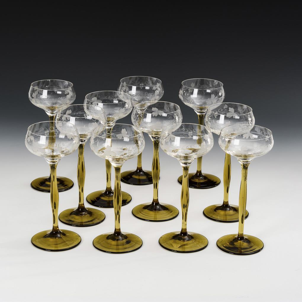 11 Art Nouveau wine glasses.