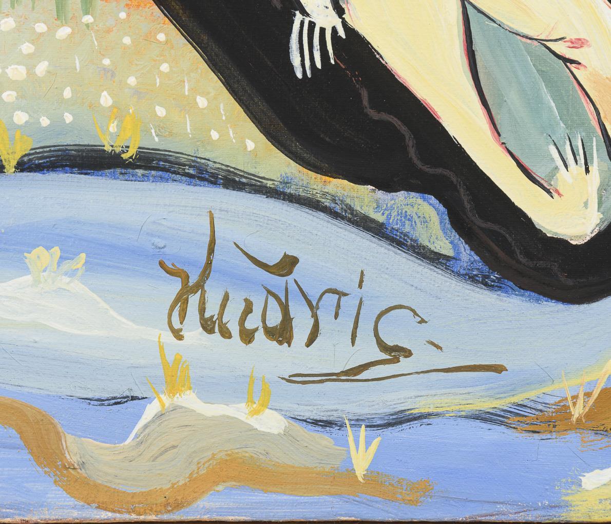 Gouache. Indistinctly signed lower left, indistinctly inscribed/titled "Florin Si Viorel" on verso.