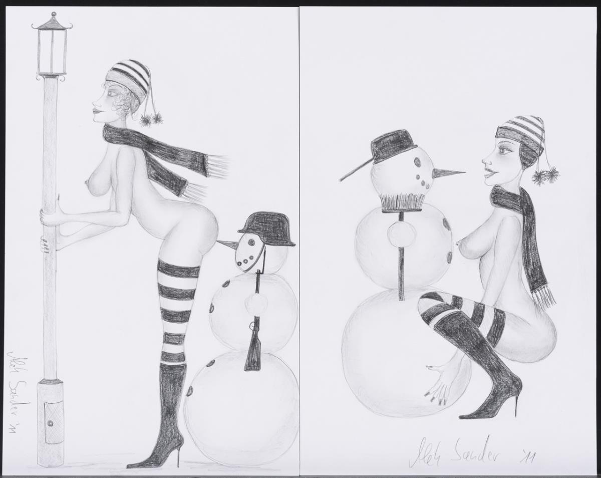 Alek Sander: 8 humorous drawings with nude and snowman