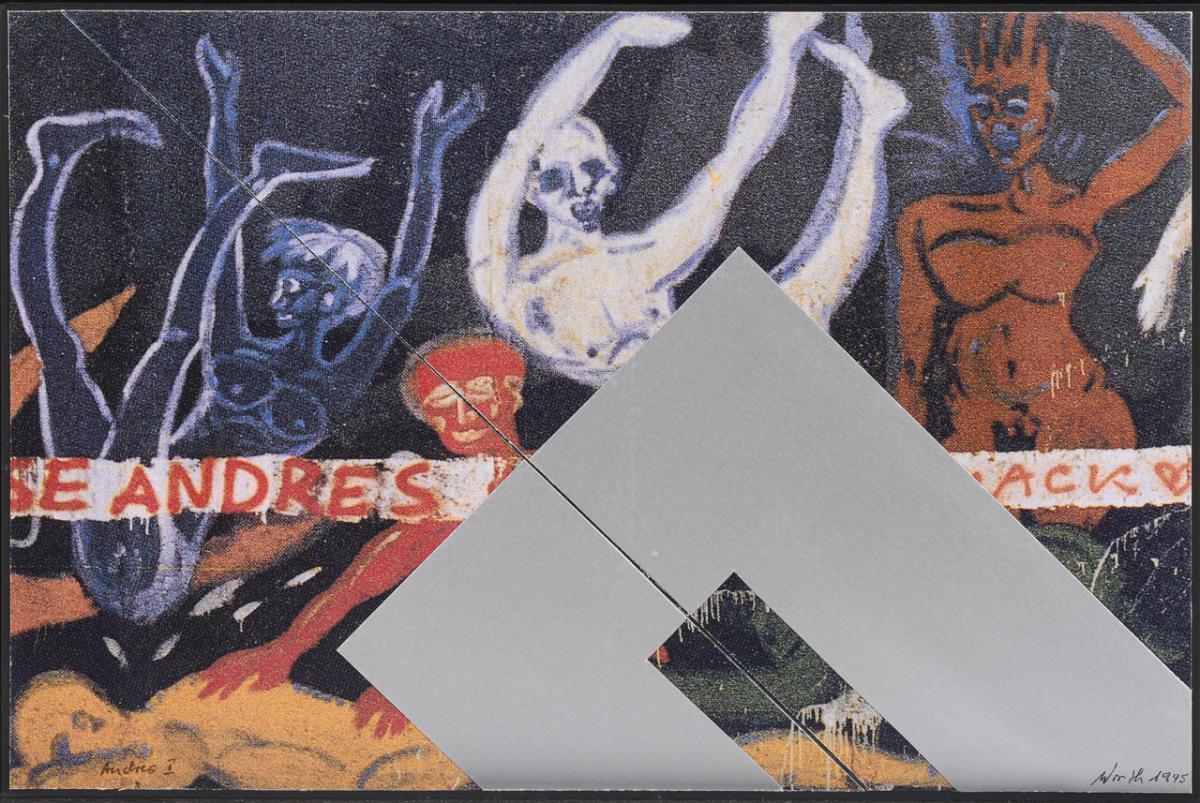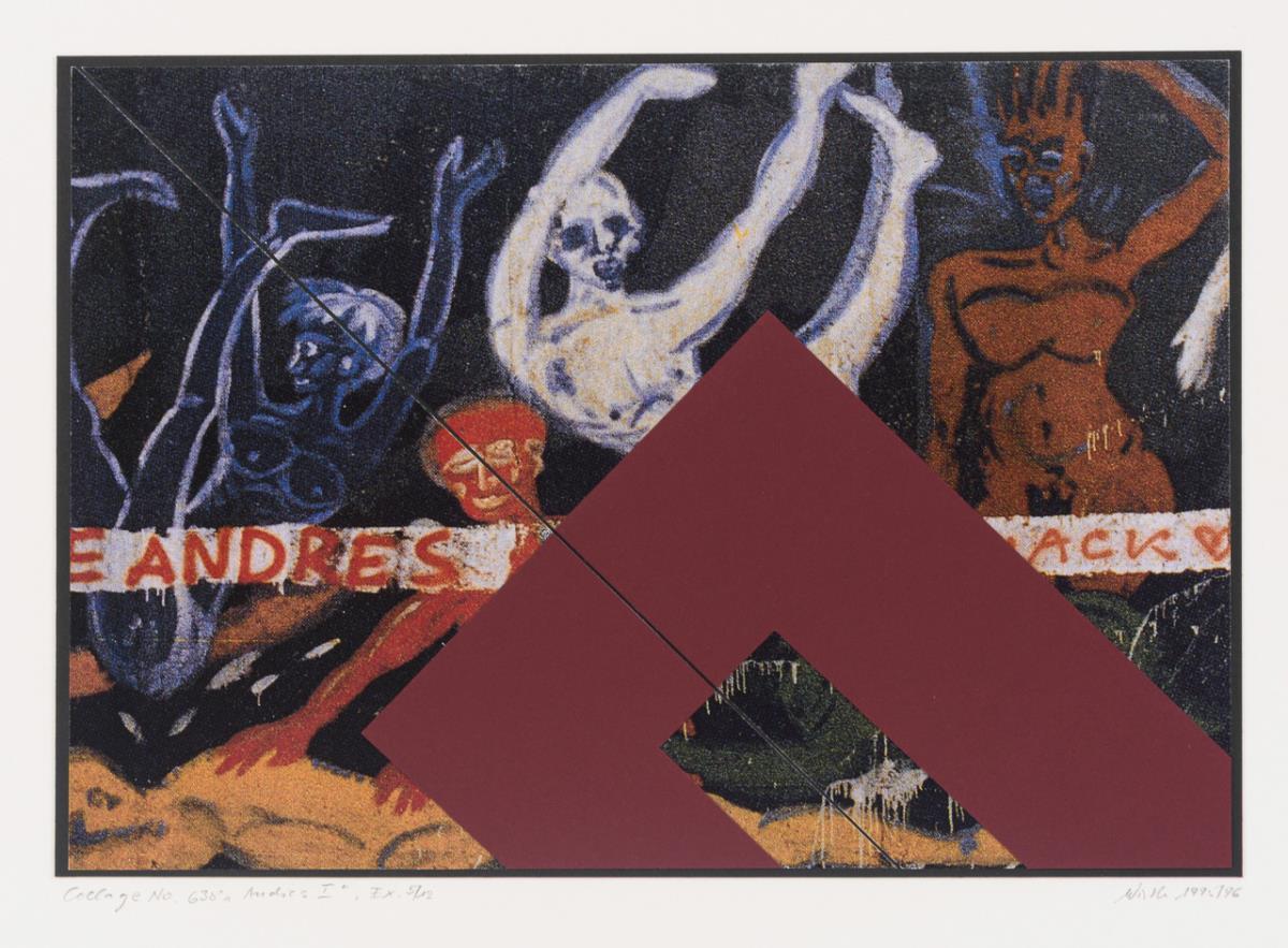 "Andres I", sheet: 27 x 40 cm, 1995 |"Colage No. 638 - Andres I", sheet: 27 x 40 cm, mounted on cardboard 43 x 55 cm, copy: 5/12, 1995/96. Minimal rubbing.