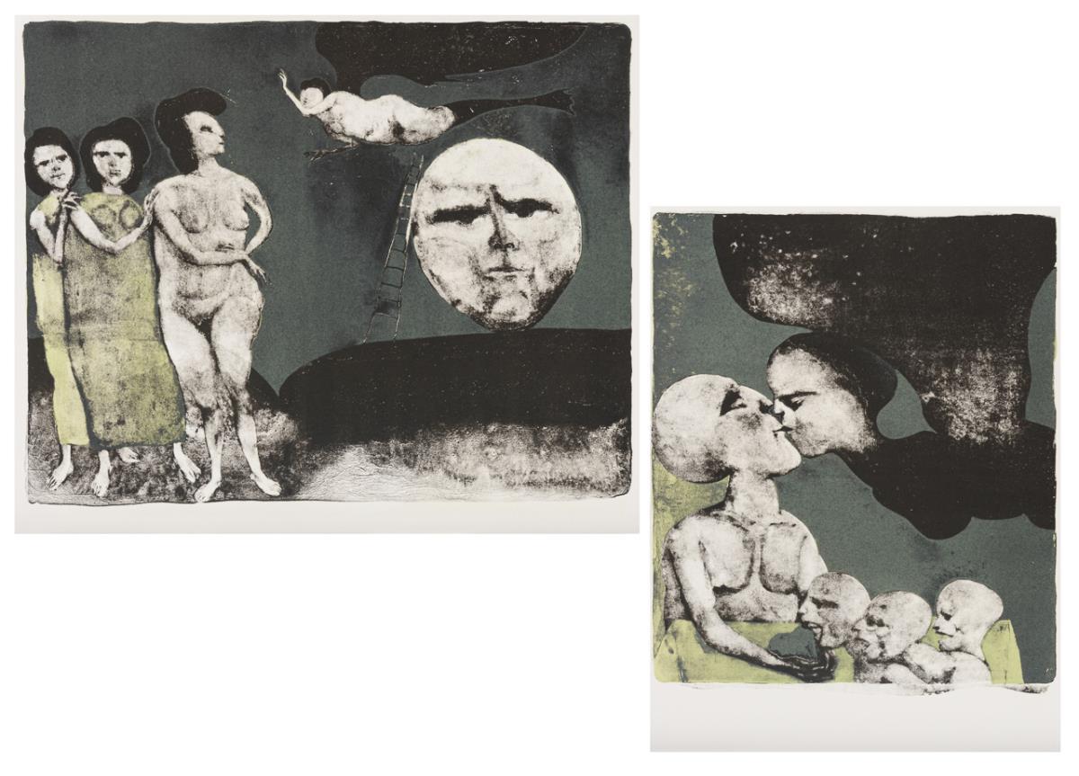 Moonscape, sheet: 32,5 x 39 cm |The Kiss, sheet: 42,5 x 31,6 cm.