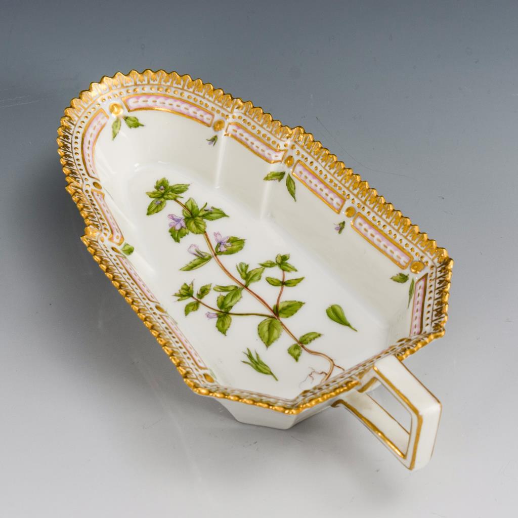 Schälchen mit gezacktem Rand und Henkel. Im Spiegel eine fein gemalte Augentrost-Pflanze, unterseitig lateinisch bezeichnet.
