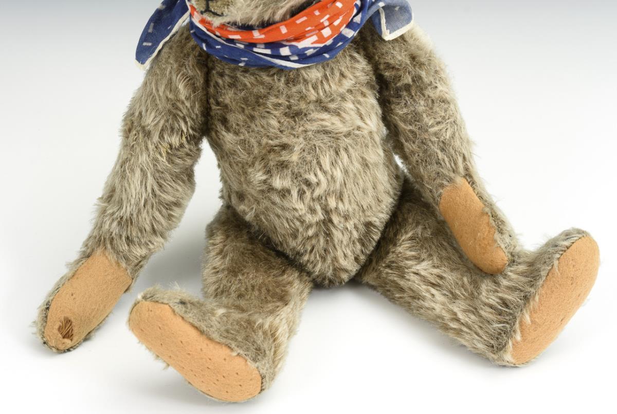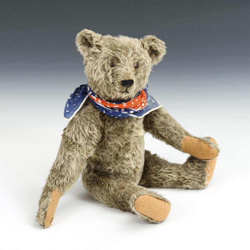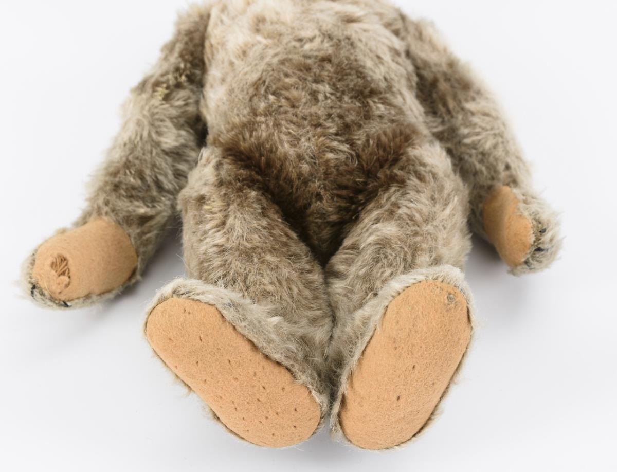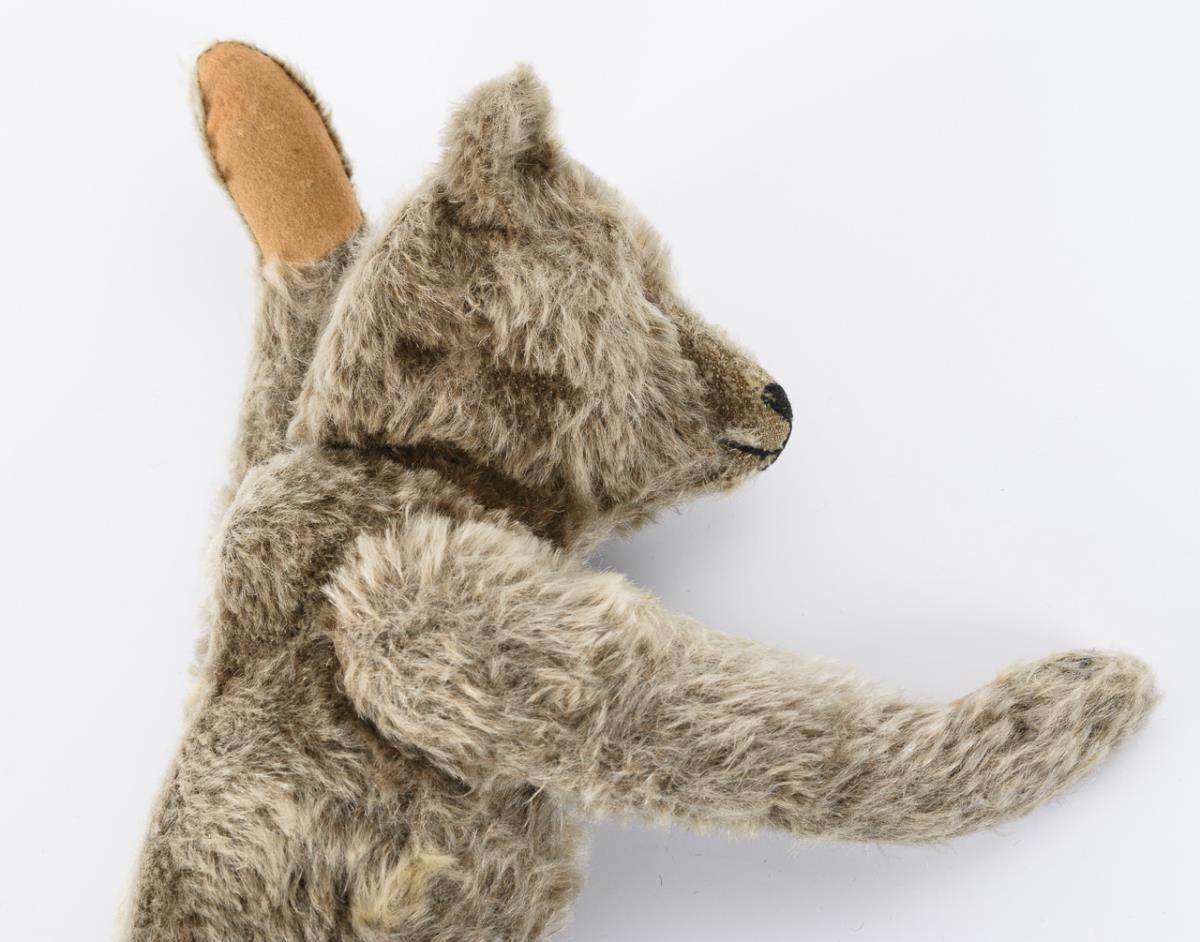 Bear with rotating head, glass eyes and felt paws. Good condition, right paw with defect.