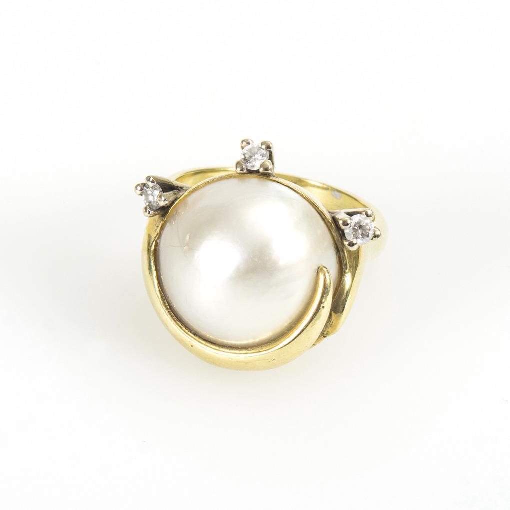 Ring with mabé cultured pearl and diamonds.