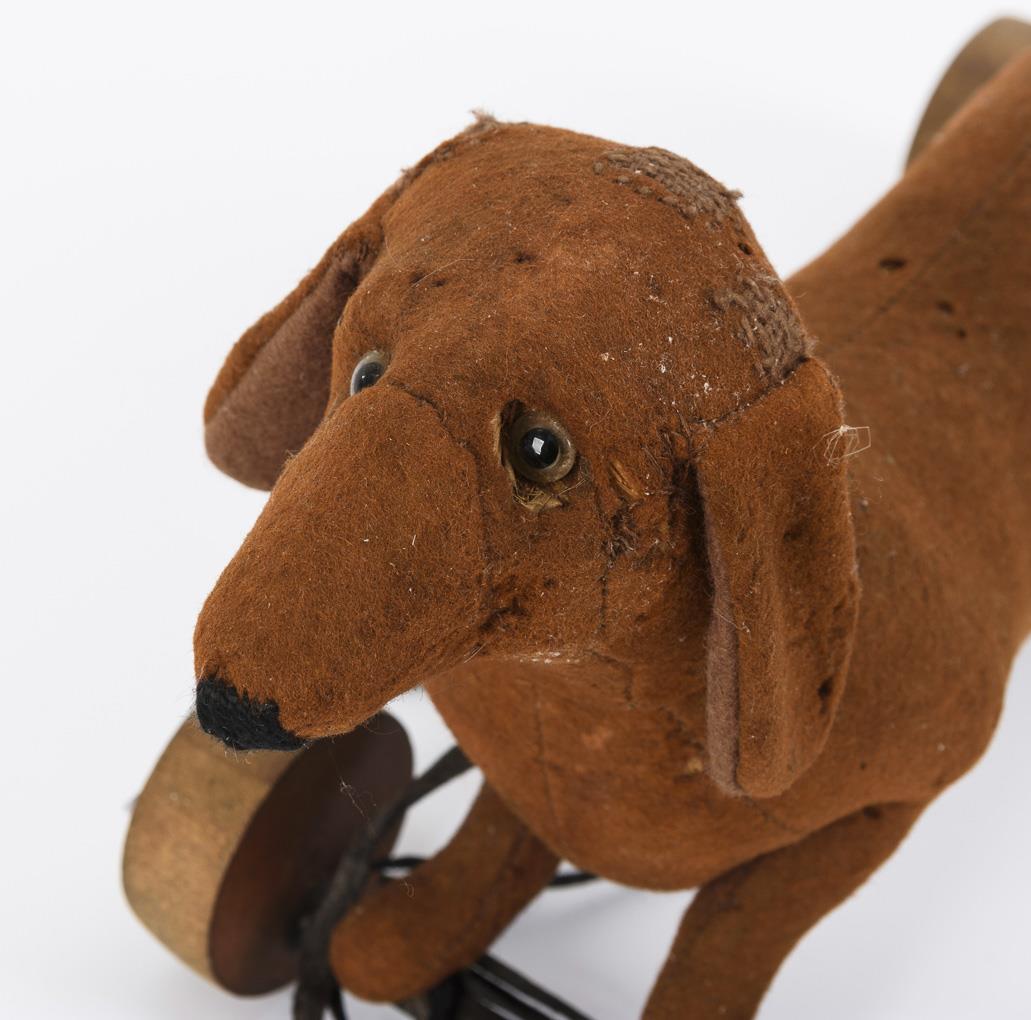 Early dachshund on wooden wheels. Steiff.