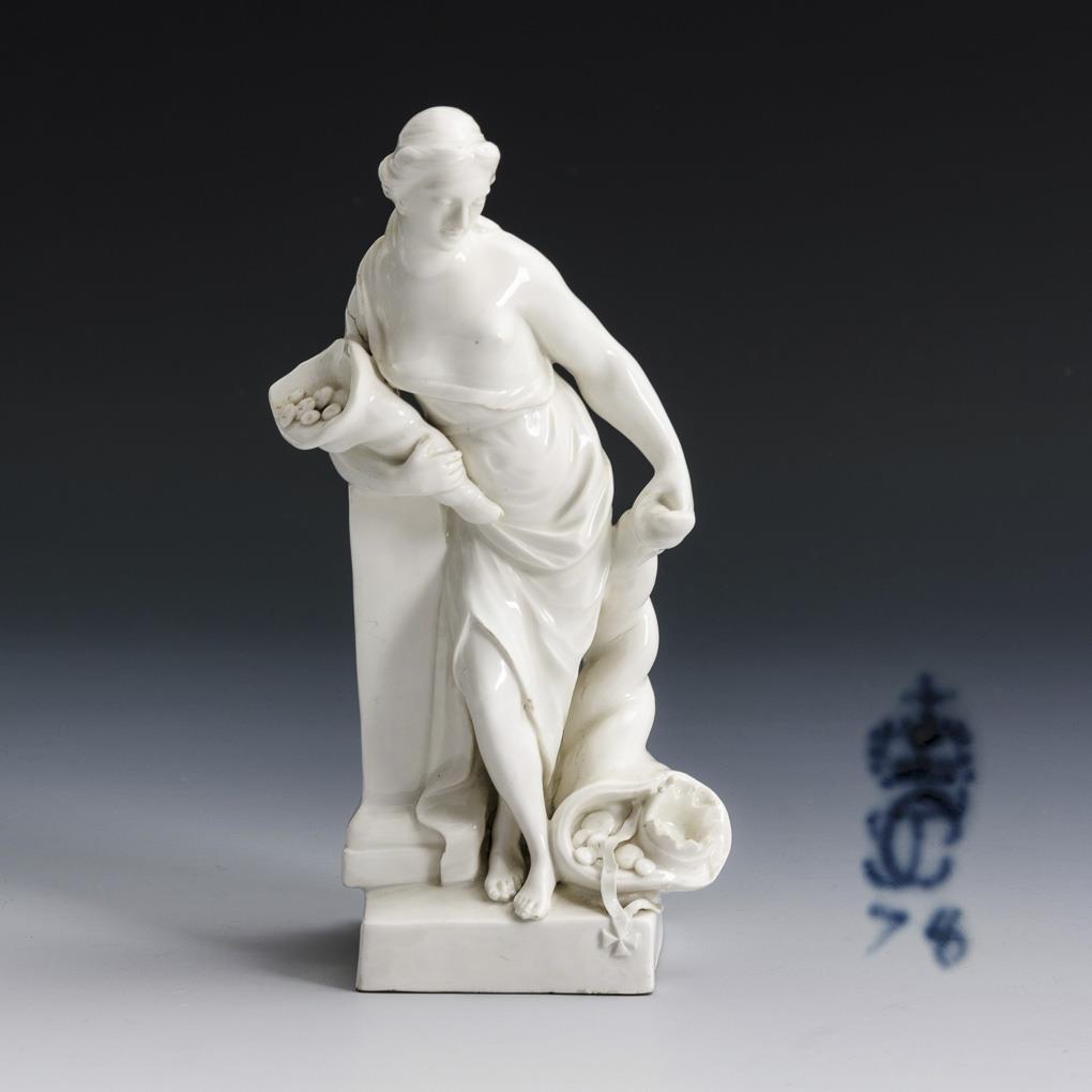 Among a column standing Fortuna with two coin-filled cornucopias. 5 prongs of the crown bumped, burn crack on the right arm.