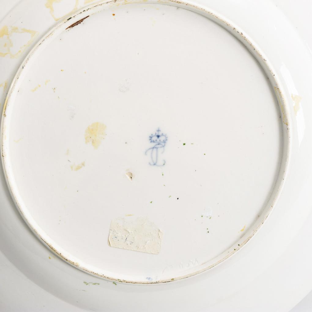 Polychrome painted, gold decorated. Ø 29,5 cm.