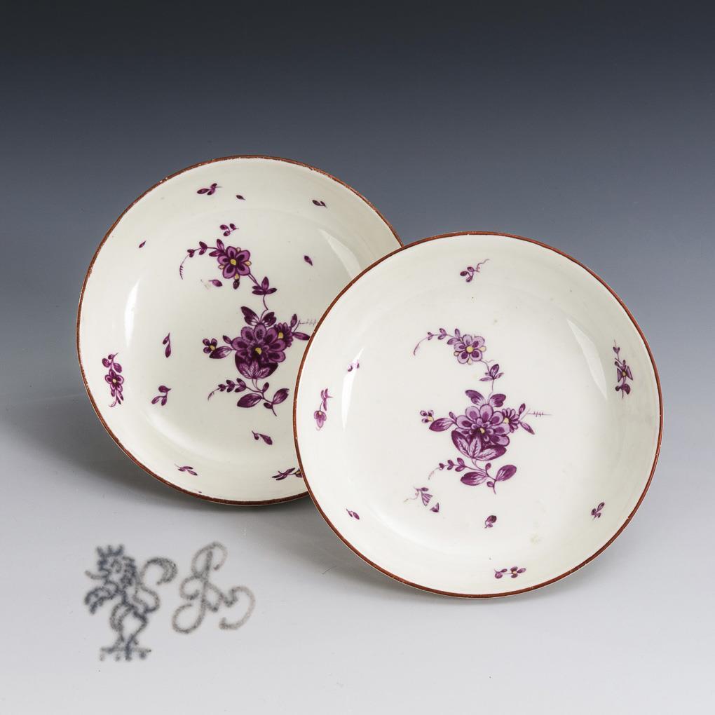 2 saucers with purple painting. Frankenthal.