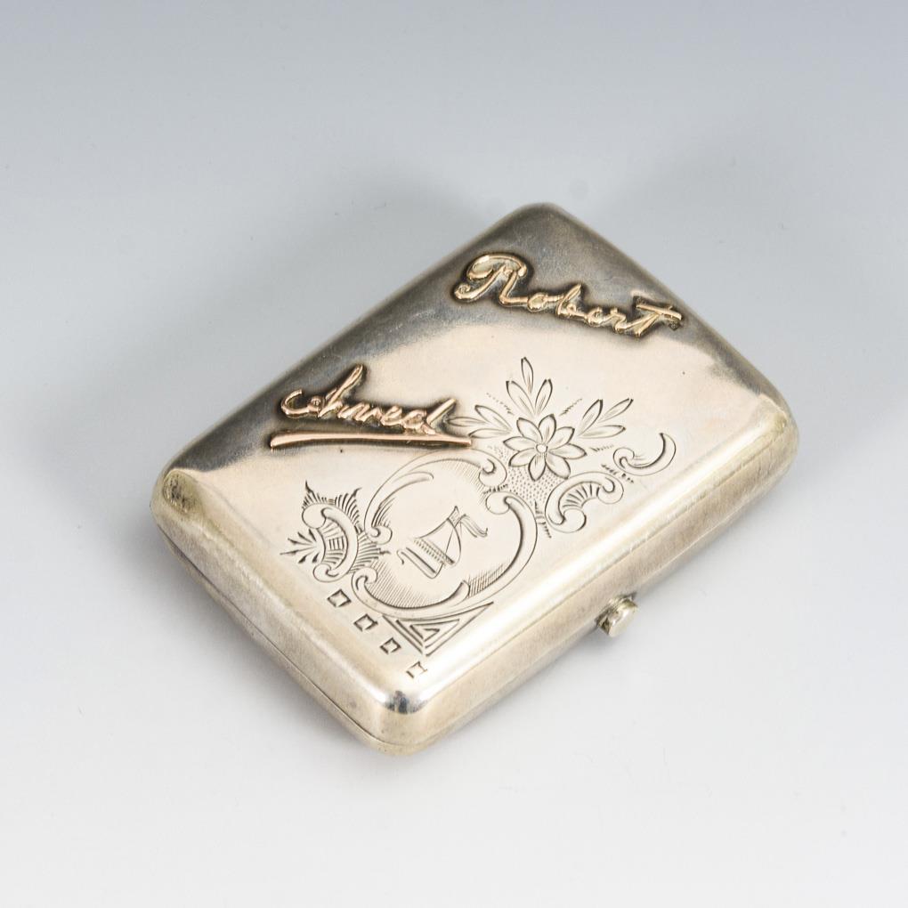 Small case with engravings and applied signatures in Latin and Cyrillic script. Inside 3 small compartments. Signs of use, dents.