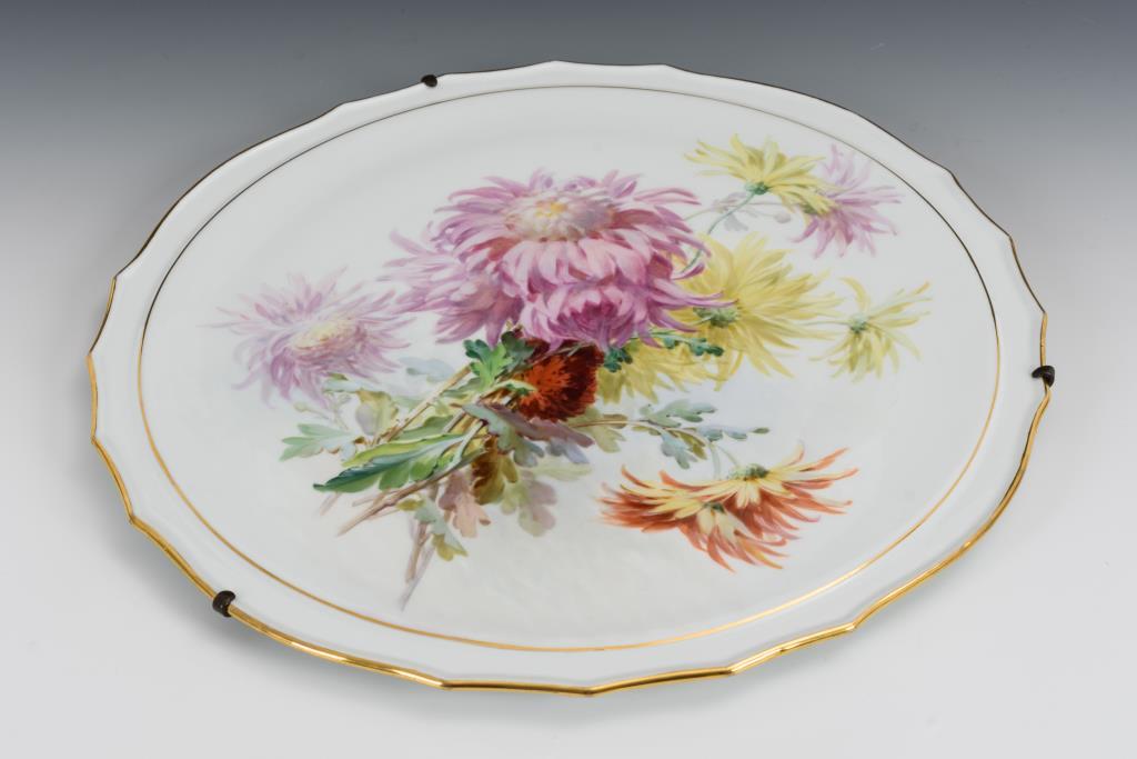 Im Spiegel ein Asternbukett. Mit Wandaufhängung. 2 kleine Goldrandbereibungen, 1 minimale Randbeschleifung.