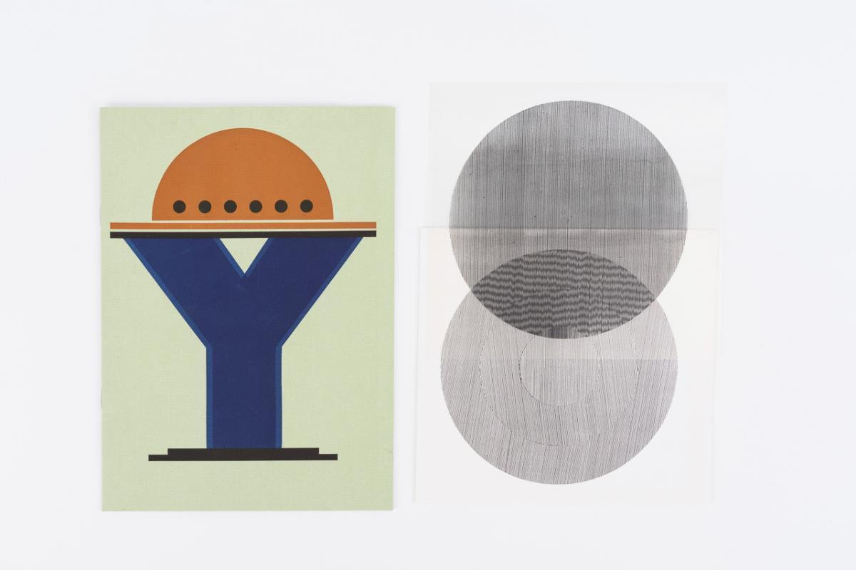 7 folding cards, color silkscreens: Allan D'Arcangelo, 1968, 17,7 x 17,7 cm; 2x Richard Anuszkiewicz, each 17,7 x 17,7 cm; 2x without inscription, each 14 x 14 cm and 2x Matthew Leibowitz: "Geoma", 1971, each 14 x 14 cm | Invitation to the exhibition "Hypothesis Experiment Invention" from 1.6.1996 to 1.9.1996 at Galerie Hoffmann, Friedberg, with foil for the creation of kinetic images and original envelope made of parchment paper, 21,5 x 21,5 cm, minimal traces of use | Booklet: "From the Treasure House of Atreus Eia Pompeia", 1991, 1 of 2300 copies, 800 of which with original multi-colored envelope, Galerie im Unteren Tor, Bietigheim, 29,5 x 21 cm.