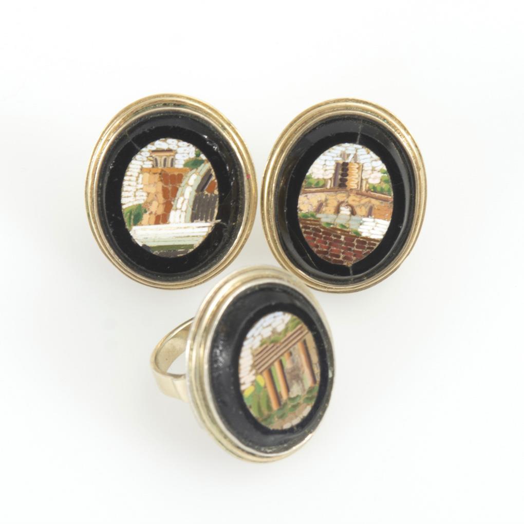 Italian ring and ear clip pair with micro mosaics.