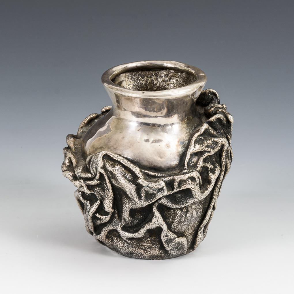 Original silver vase with fabric texture.