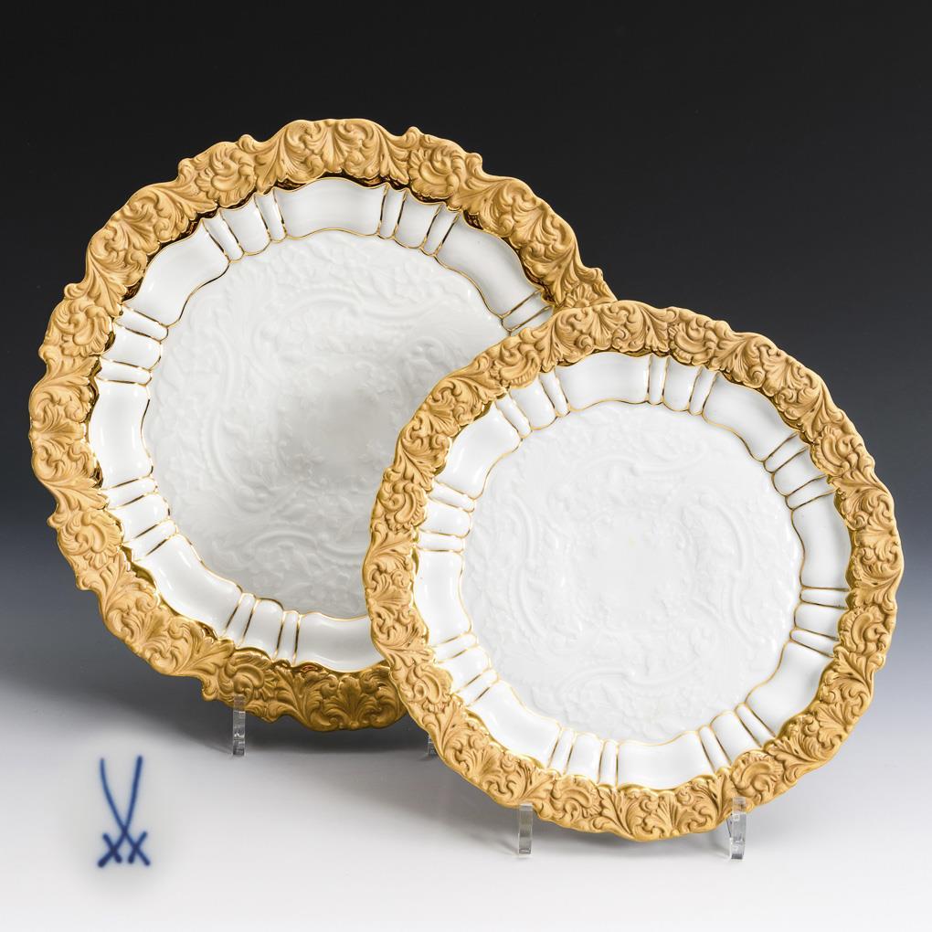 Plate with floral relief mirror and gold-bronzed acanthus leaf relief on the rim.