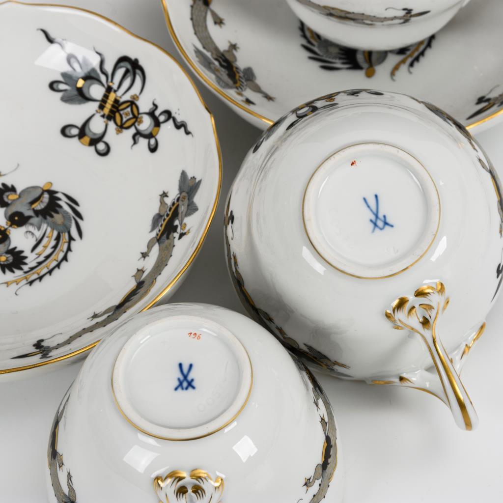 Schwarz-graue Malerei, Goldstaffage.H Tassen 6,5 cm, Ø originale Untertassen 14,5 cm.