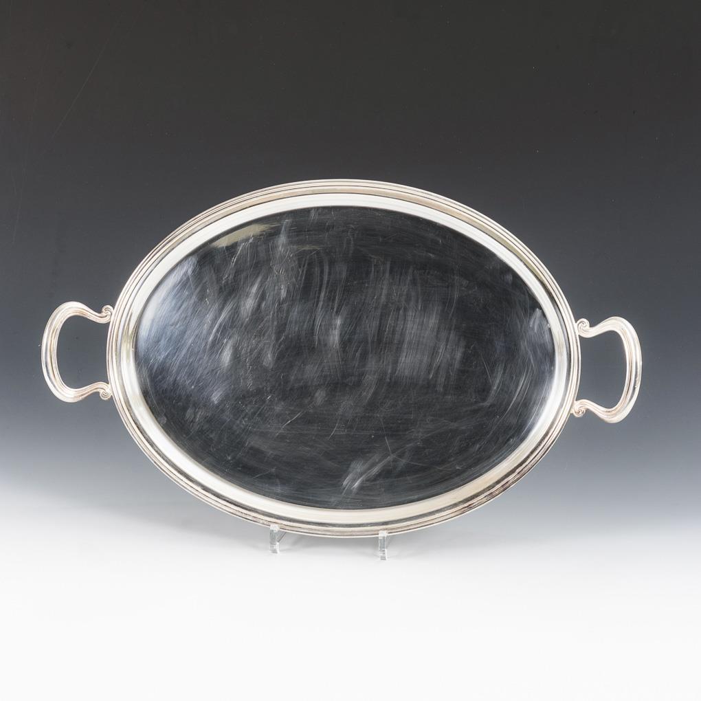 Oval tray with 2 handles. Light scuffing or cleaning marks, minimal dents.