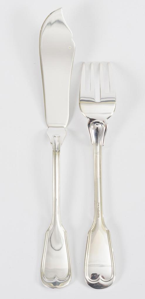 Silver fish cutlery for 12 persons. Zarampella, Padua.