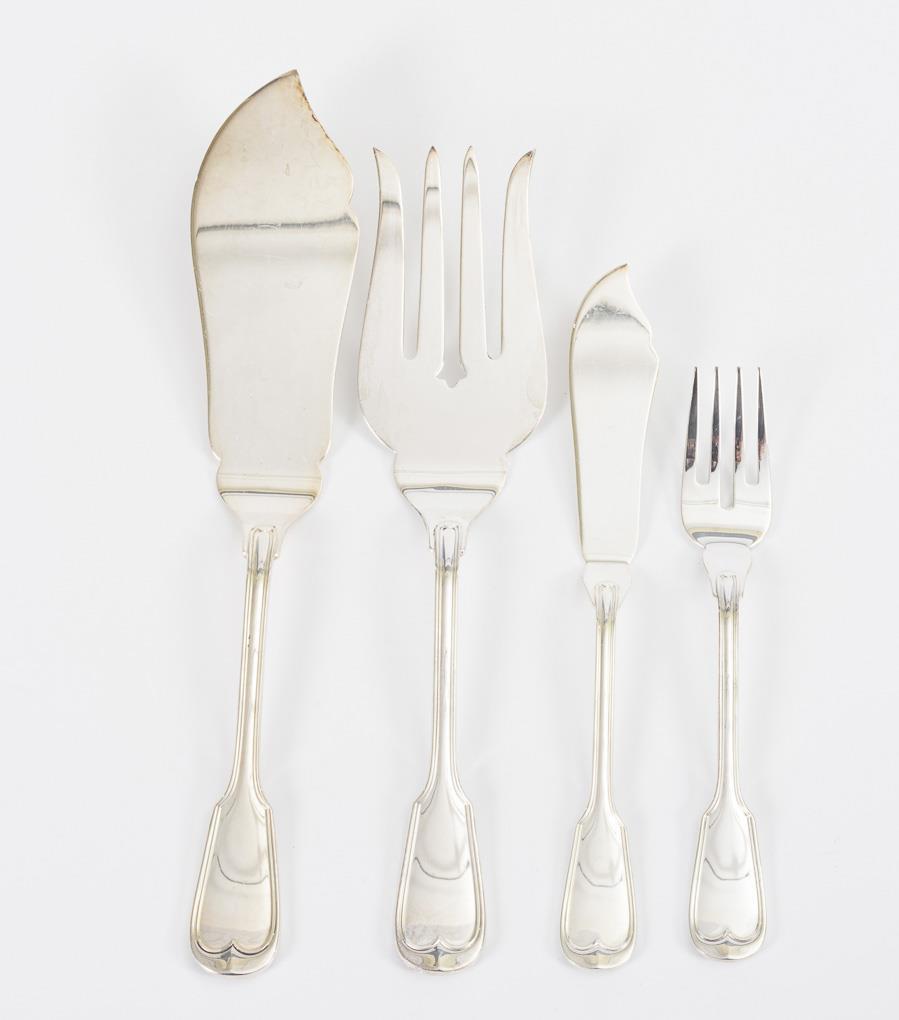 Silver fish cutlery for 12 persons. Zarampella, Padua.