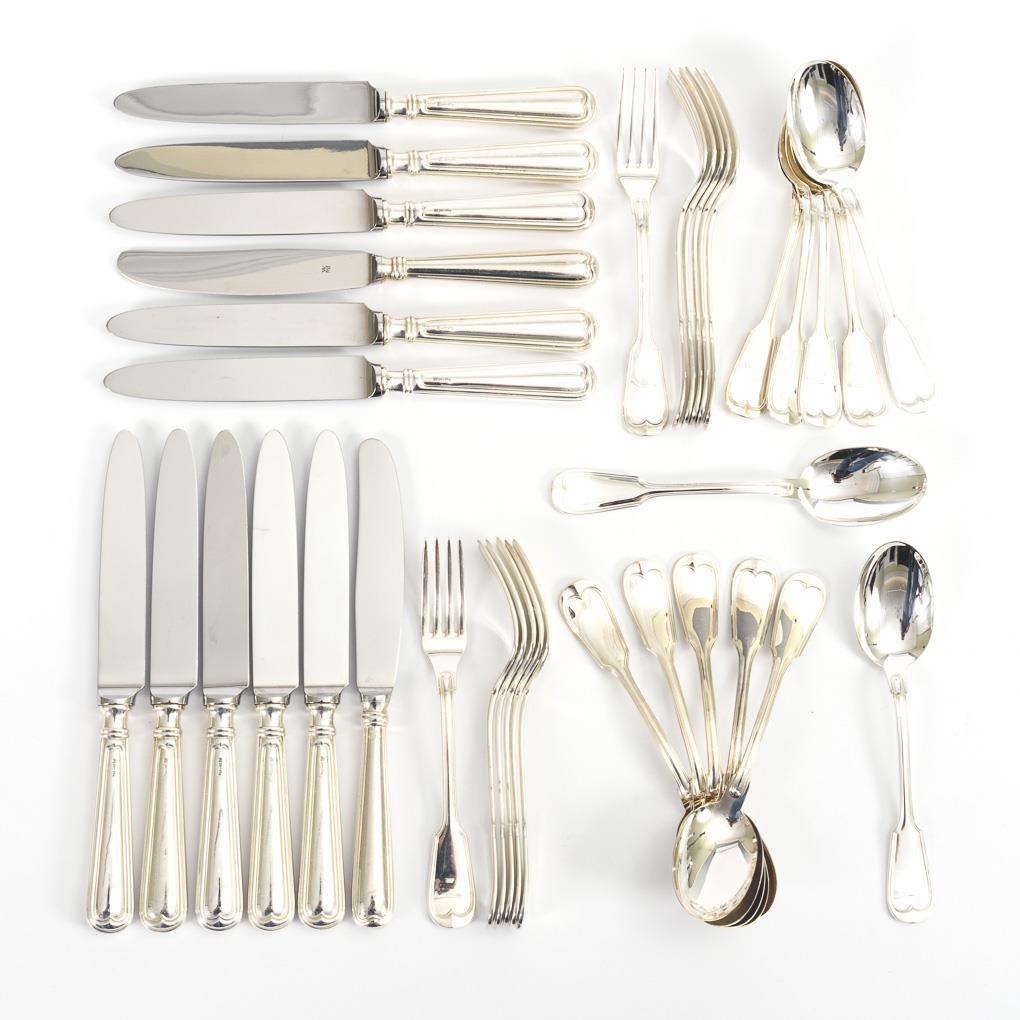 10 knives, 12 forks and 12 spoons. Plus 2 similar WMF knives. Each Augsburg thread. Minimal signs of use.
