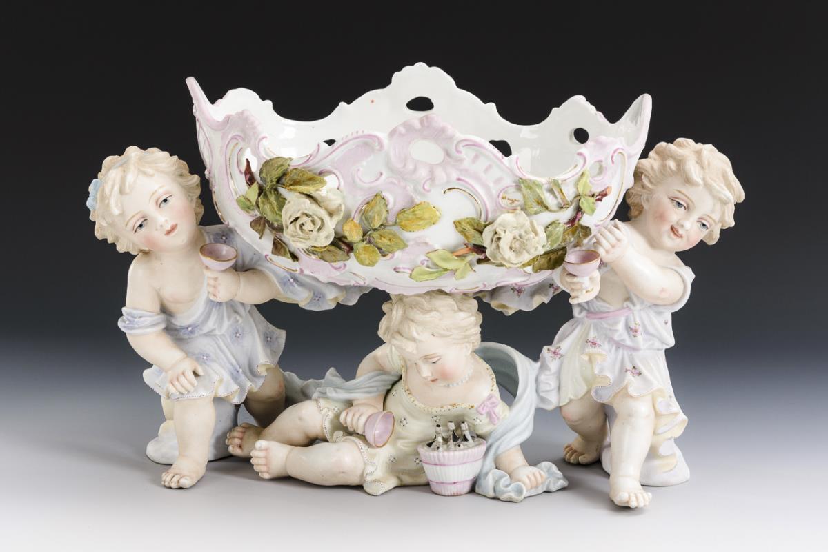 3 children with bowl. Sitzendorf.
