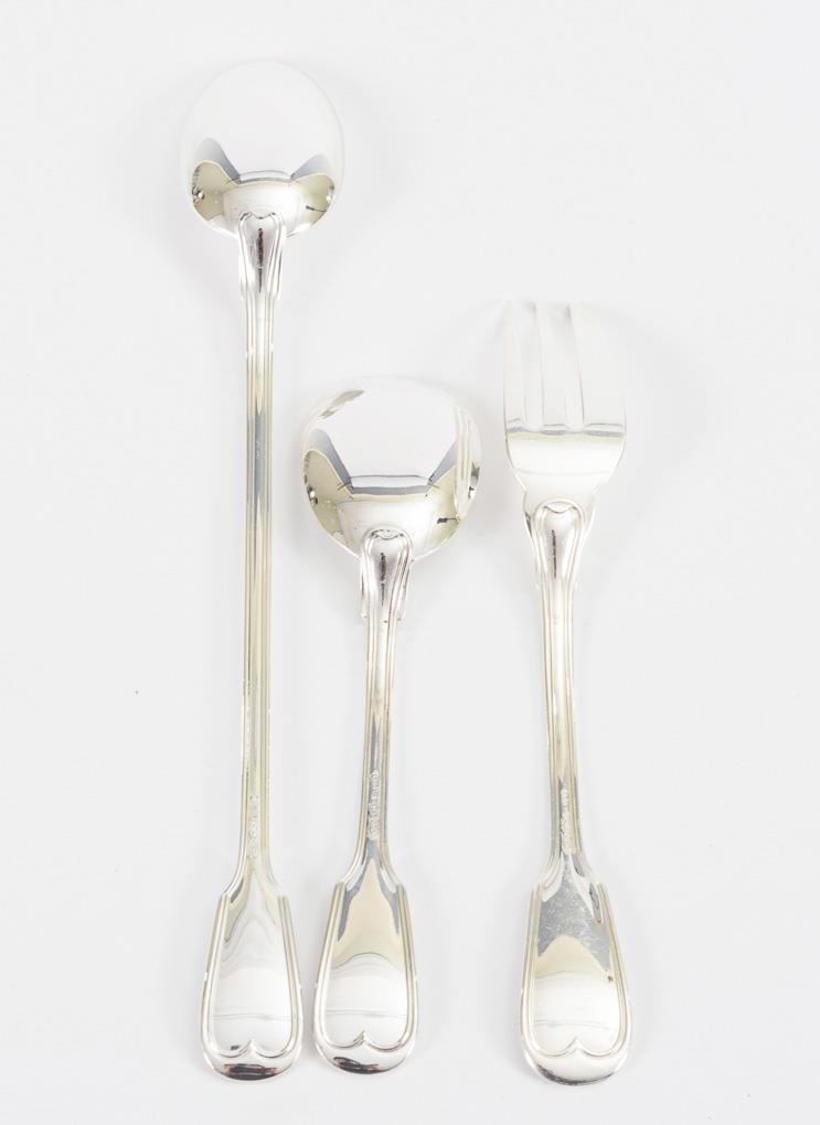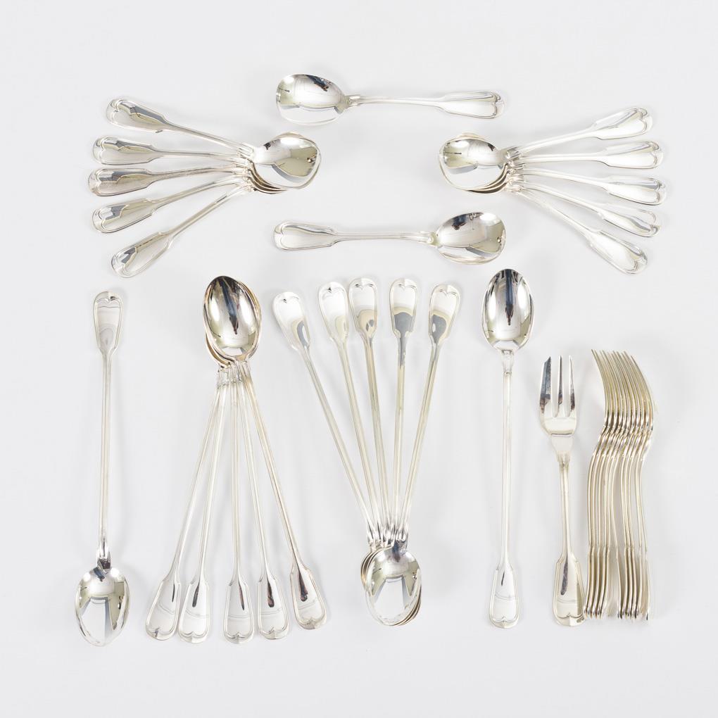Each of 12 teaspoons, cake forks and ice cream spoons with spade handles.