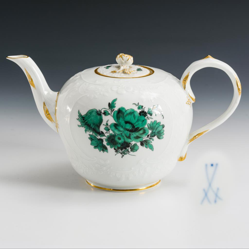 Kupfergrüne Blumenmalerei, Goldstaffage.H 12,5 cm.