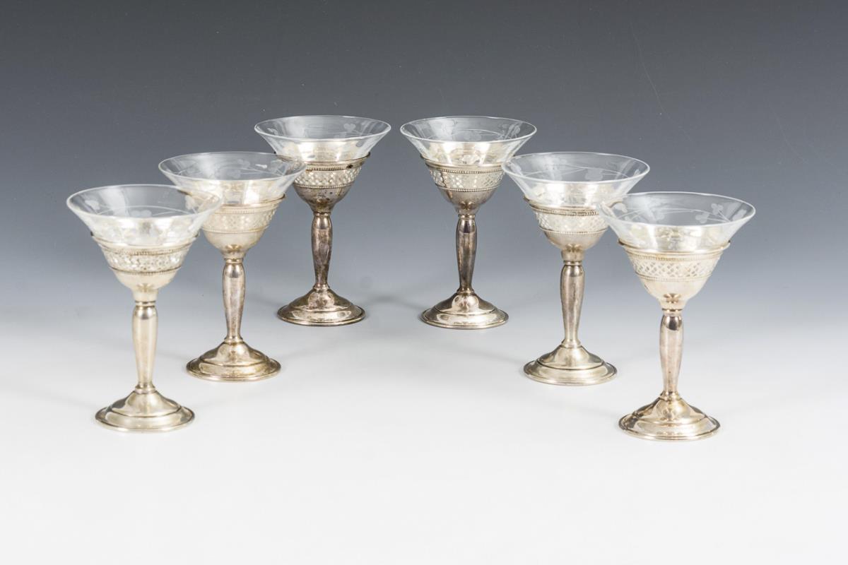 6 silver footed liqueur glasses. Elgin Silversmith Co, New York.
