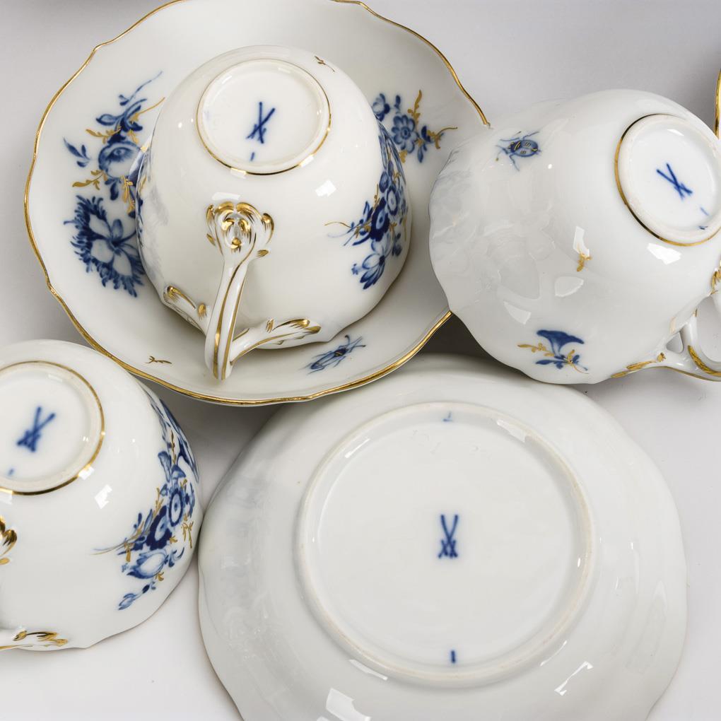 11 pieces of a mocha service with blue painting. Meissen.