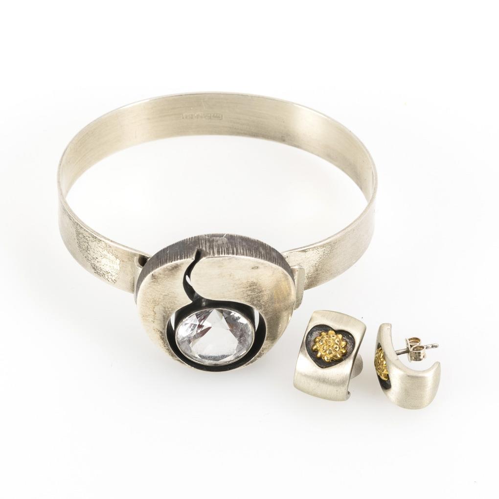 Silver 925 stamped. Hallmark bangle: Finland S8 (1998). Bangle Ø 6 cm. Stud earrings 1.5 x 1 cm. 25,2/7,4 g.