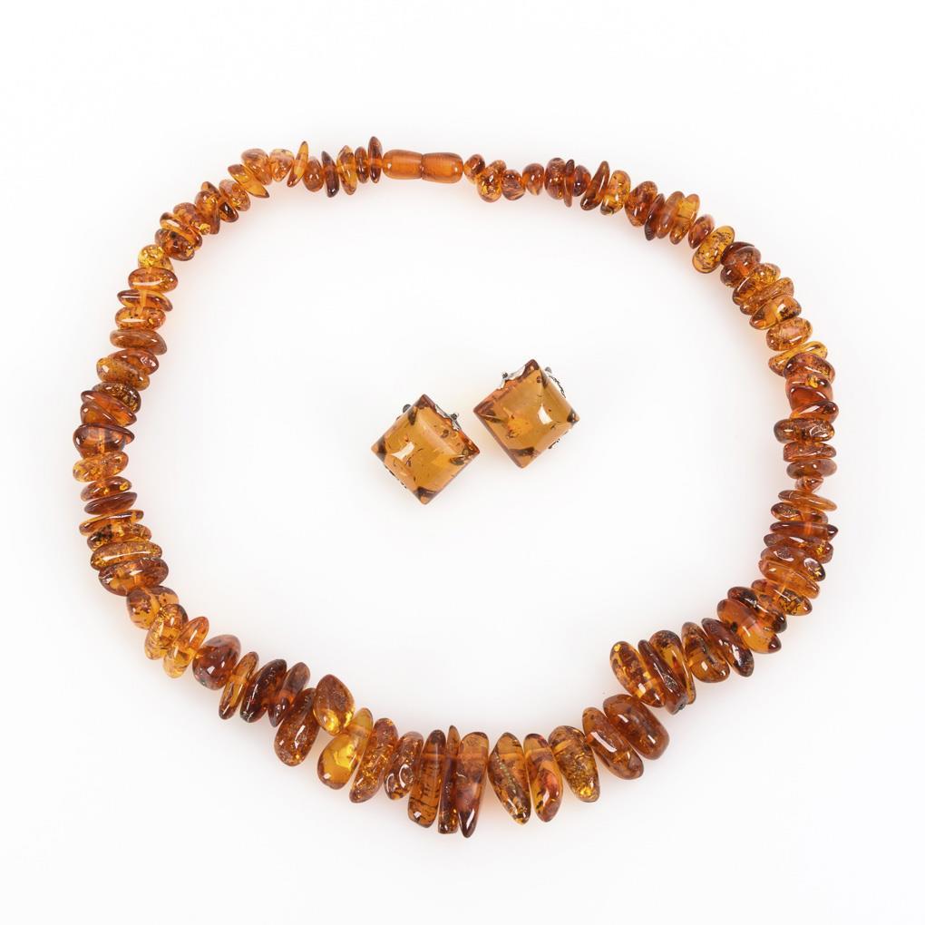 Silver tested. Earrings 1,9 x 1,9 cm. Chain L 53 cm. 10,3/53,2 g.
