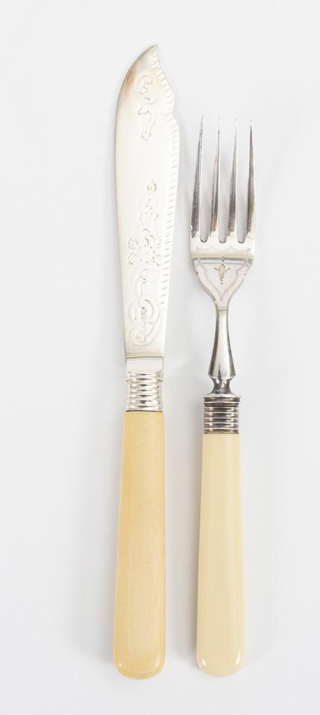 Elegant fish cutlery for 12 persons in wooden casket.