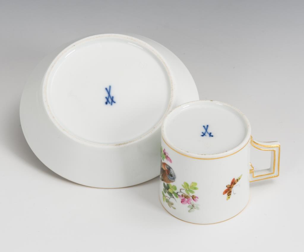 Polychrome Malerei, Goldstaffage.H Tasse 5 cm, originale Untertasse 11 cm.