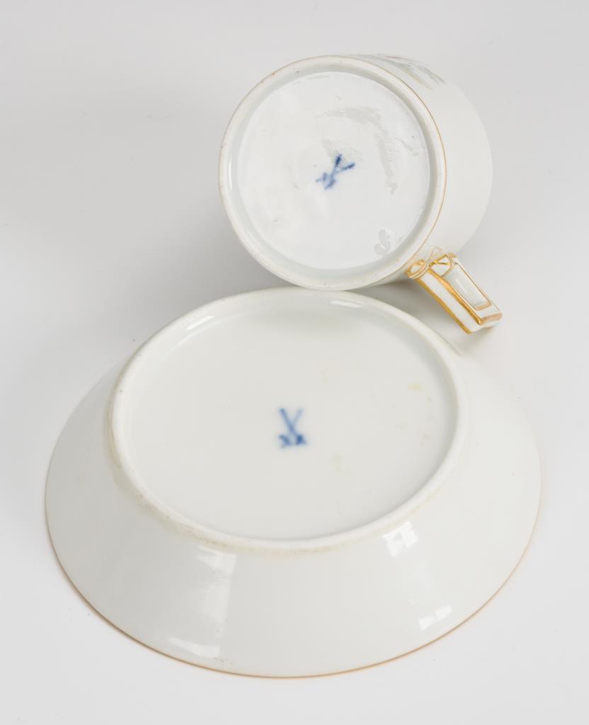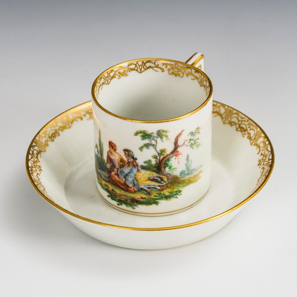 Polychrome Malerei, Goldstaffage.H Tasse 5 cm, originale Untertasse 11 cm.